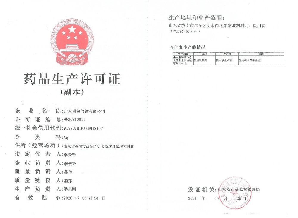 2022年12月取得國(guó)家藥品監(jiān)督管理局頒的藥品注冊(cè)證書(shū),醫(yī)用氧項(xiàng)目正式投入生產(chǎn)